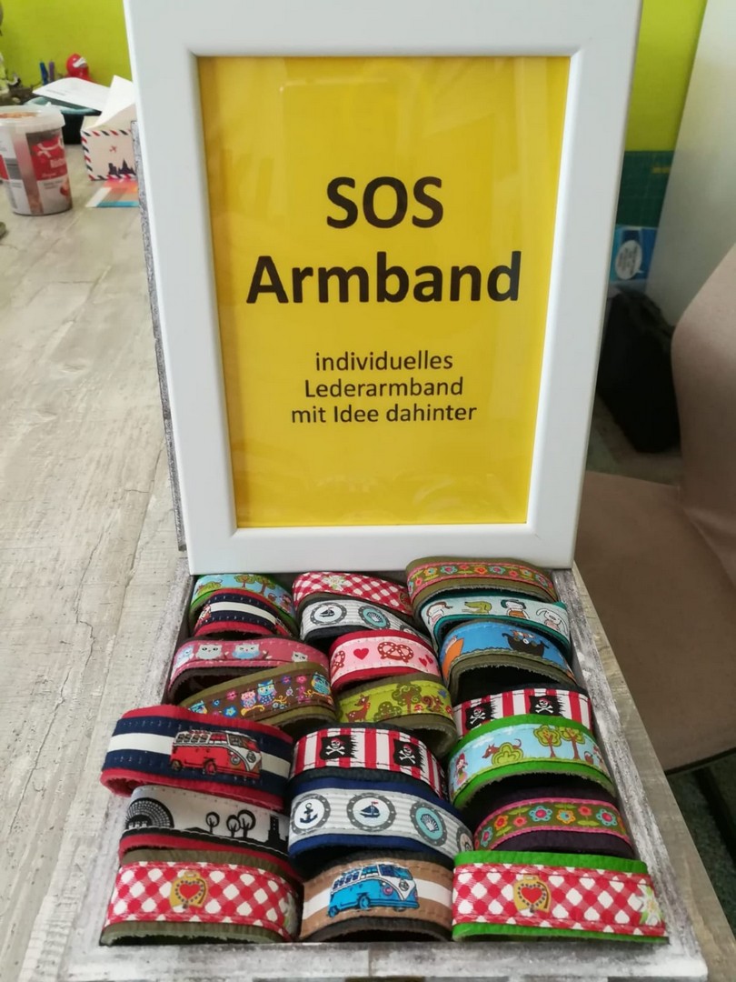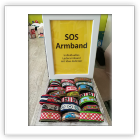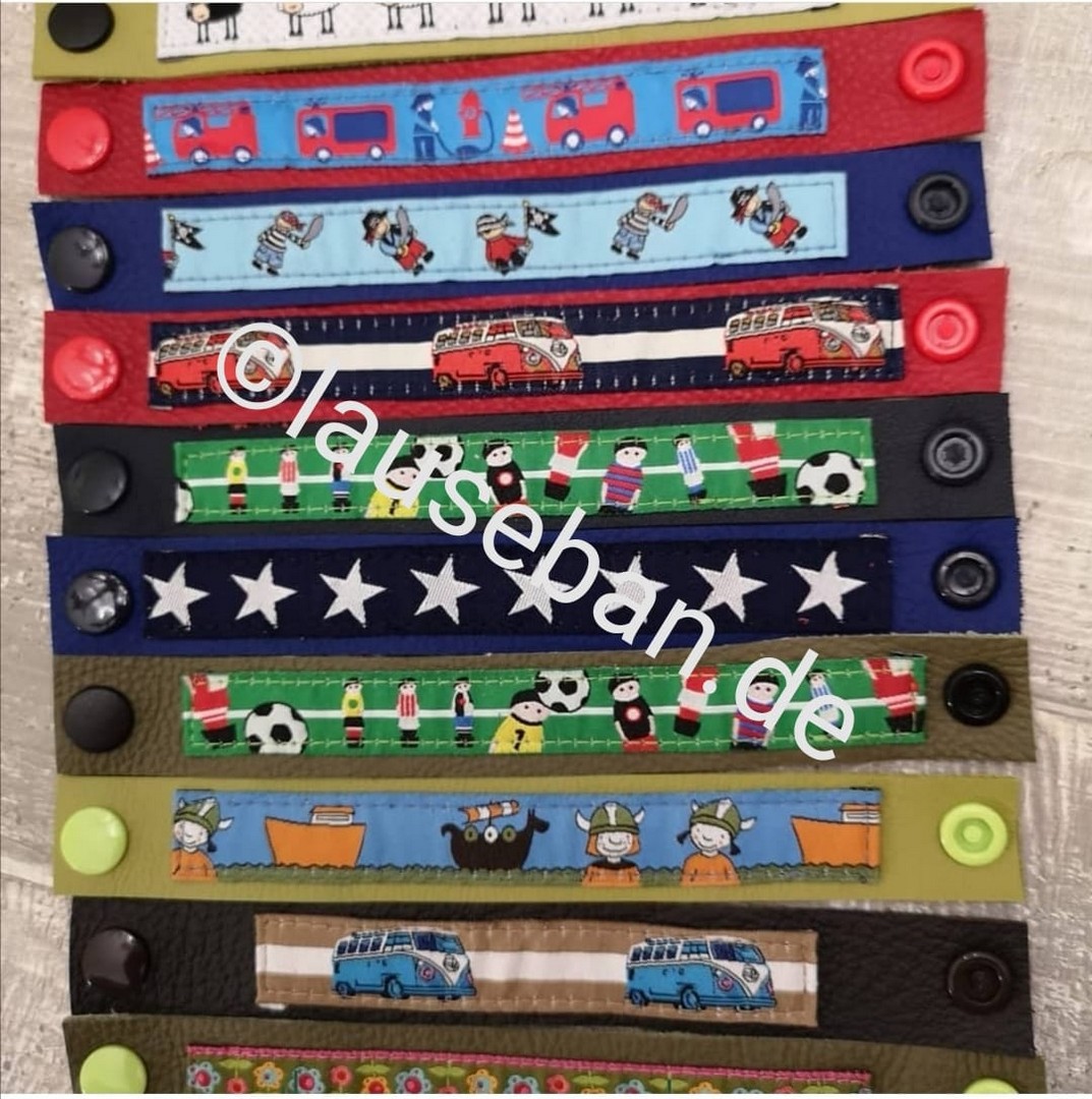 Auf der Rückseite der Lederarmbänder ist Platz für Name und Telefonnummer - für den Fall, dass Sie ihr Kind mal aus den Augen verlieren sollten, hat es die Kontaktdaten dabei... Also nicht nur chic, sondern auch durchdacht. Ich habe verschiedene Größen und Designs vorrätig, es können aber auch gerne Wünsche geäußert werden. Im übrigen nicht nur für die Mädels, sondern auch für Jungs eine tolle Sache. Die individuellen Armbänder sind ab 5,50 € erhältlich.